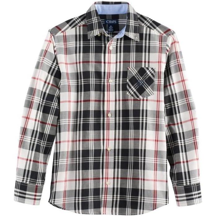 He'll go to the head of the class wearing this boys' Chaps plaid shirt.
