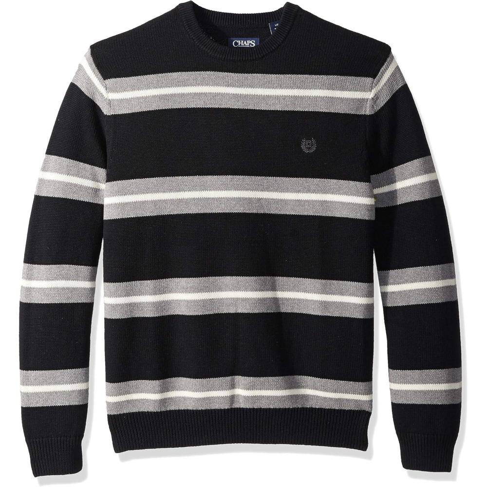 Chaps Mens Classic Fit Cotton Crewneck Sweater(Black Stripe)