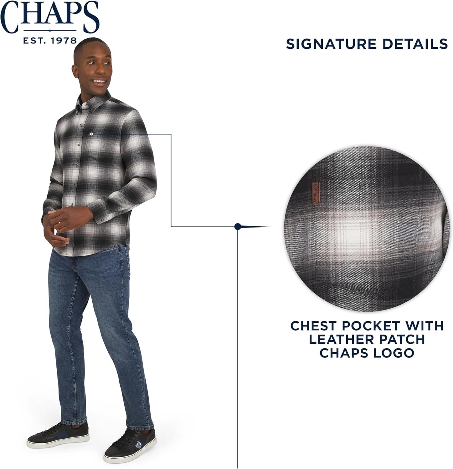 Chaps Men’s Classic Fit Long Sleeve Button Down Stretch Flannel Casual Woven Shirt (S-2XL)(Charcoal)