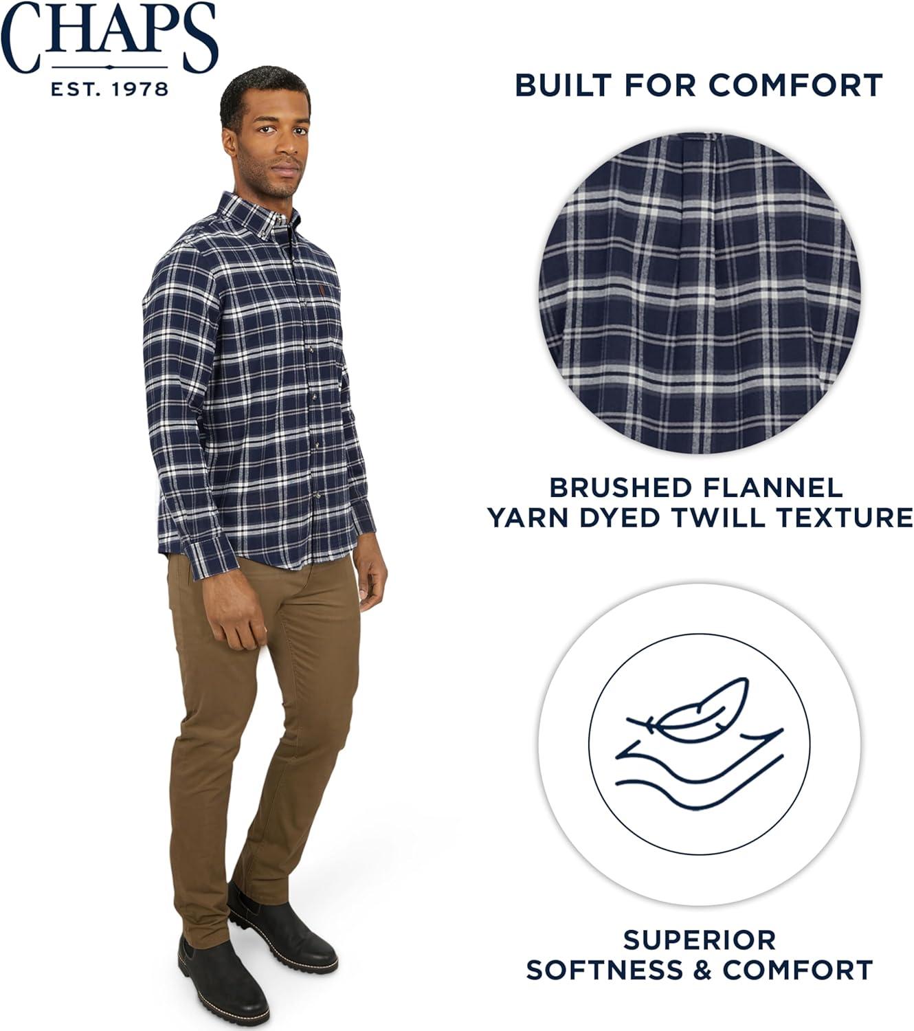 Chaps Men’s Classic Fit Long Sleeve Button Down Stretch Flannel Casual Woven Shirt (S-2XL)(Newport Navy)