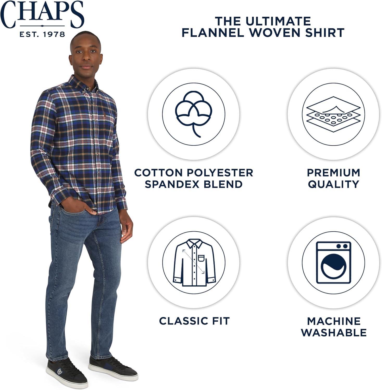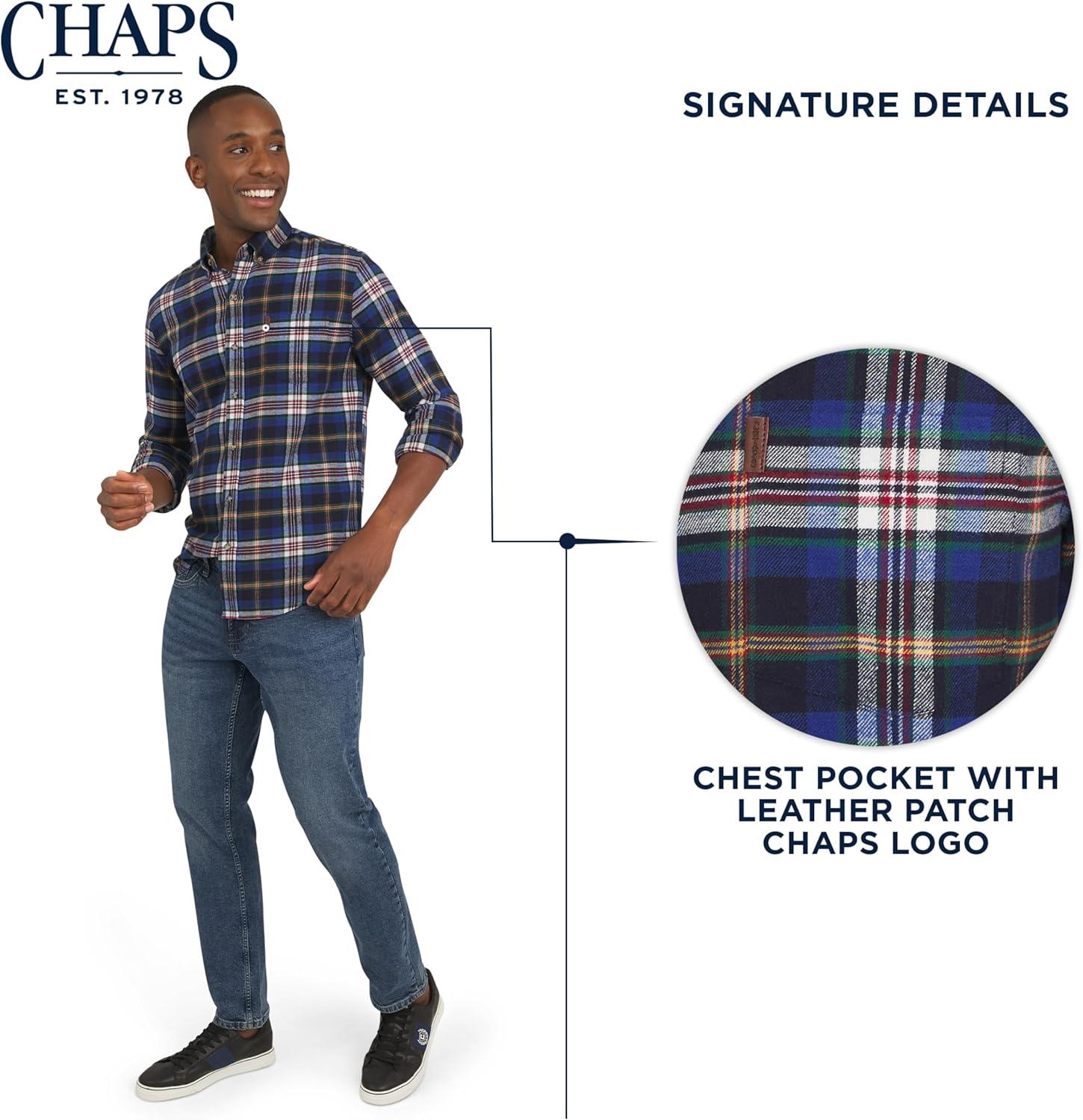 Chaps Men’s Classic Fit Long Sleeve Button Down Stretch Flannel Casual Woven Shirt(Blue Multi)