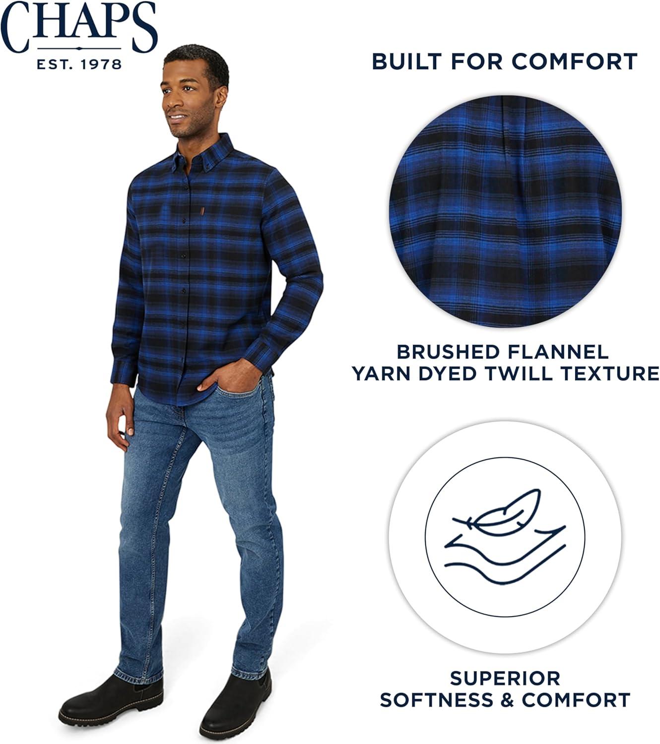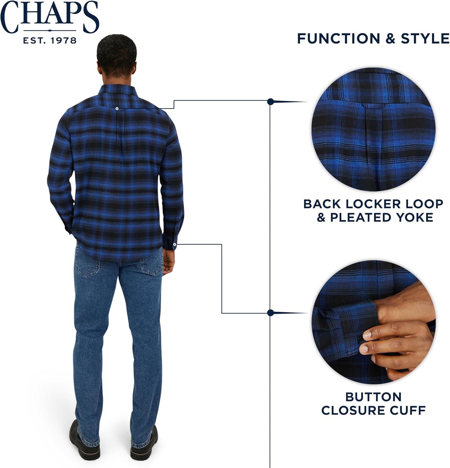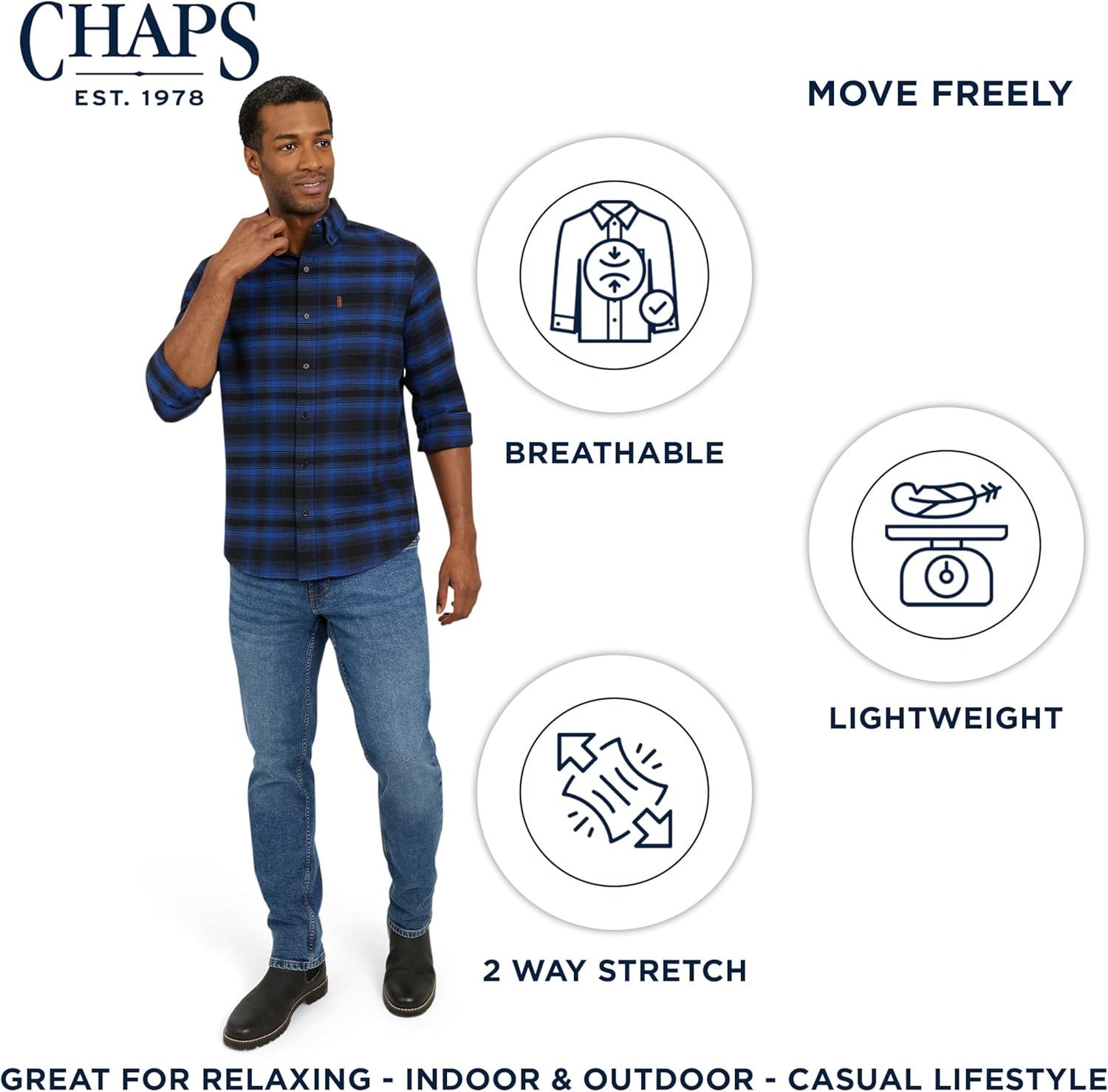 Chaps Men’s Classic Fit Long Sleeve Button Down Stretch Flannel Casual Woven Shirt(Royal Blue)