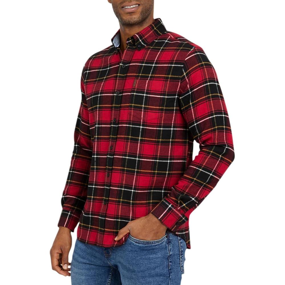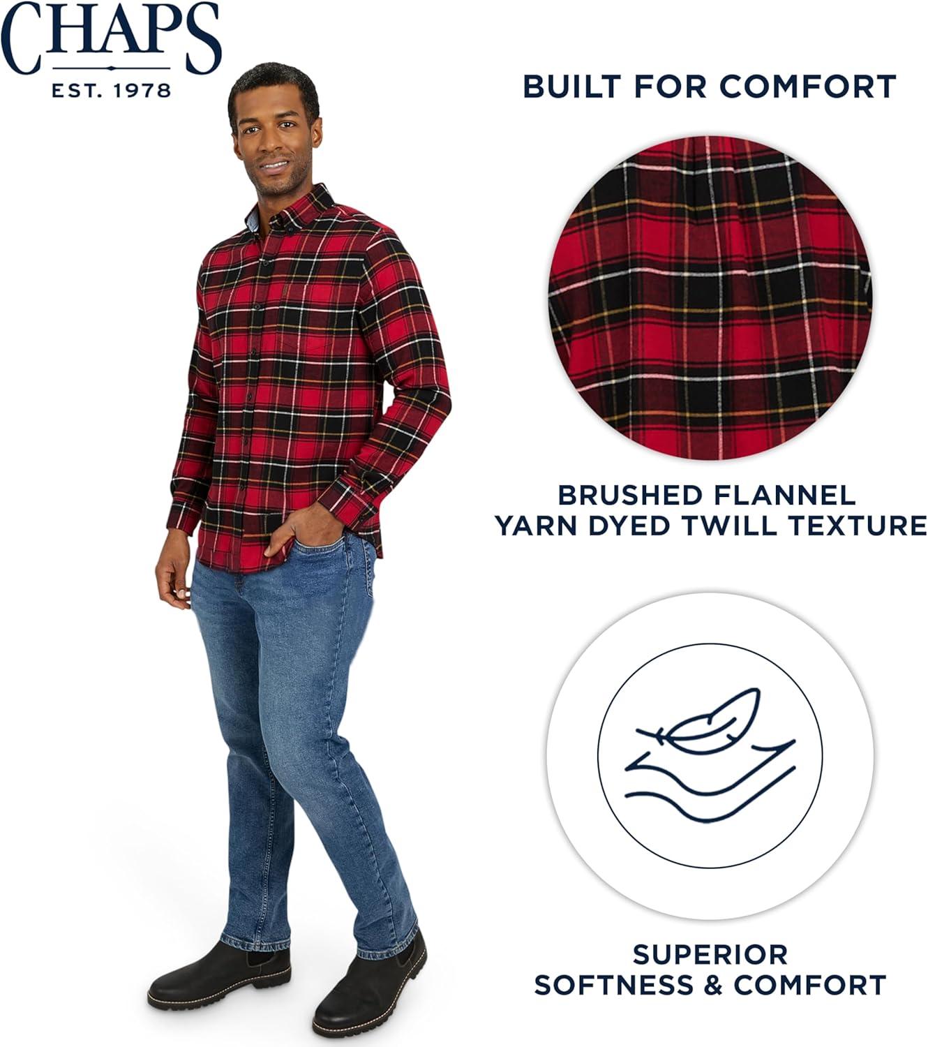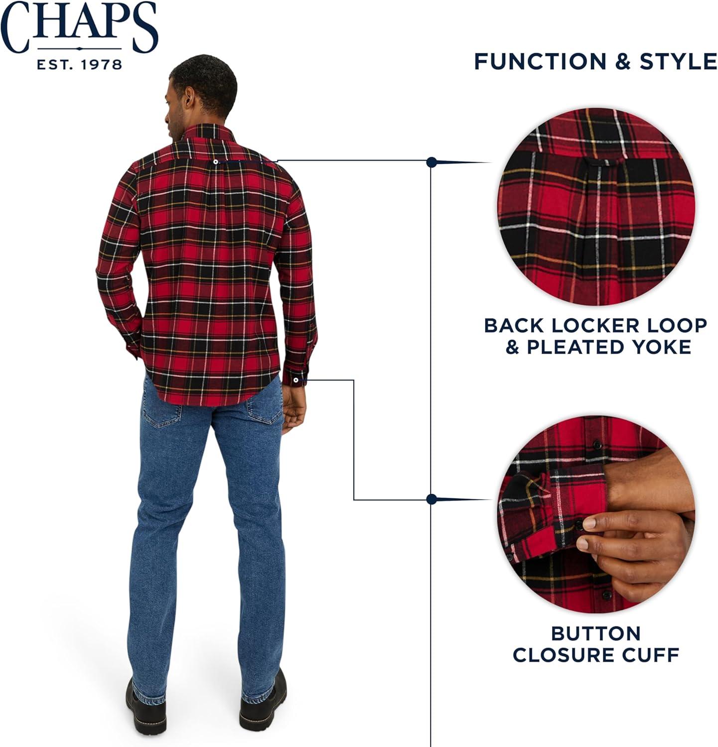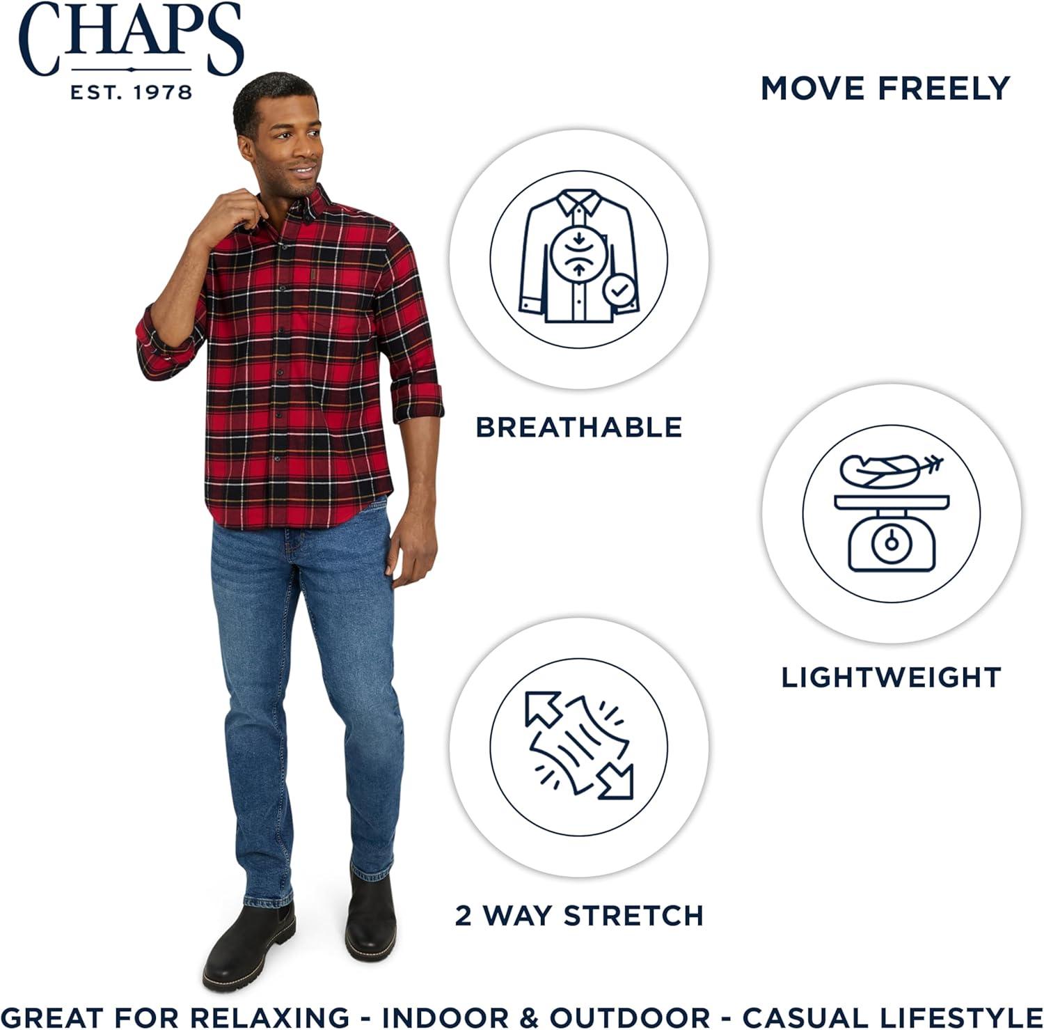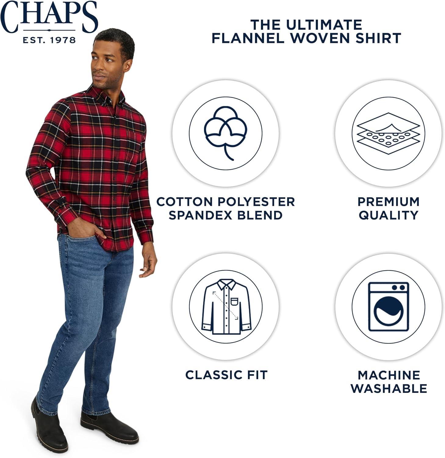 Chaps Men’s Classic Fit Long Sleeve Button Down Stretch Flannel Casual Woven Shirt(Scarlet)