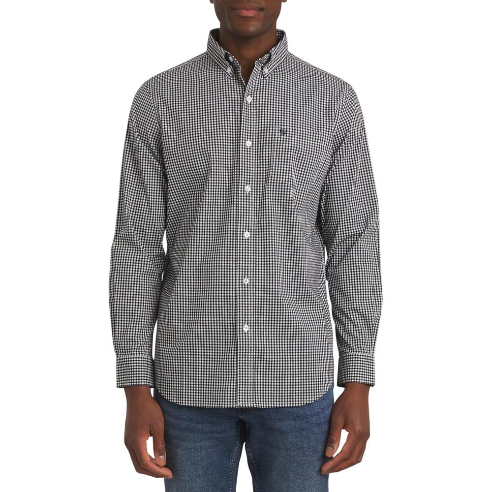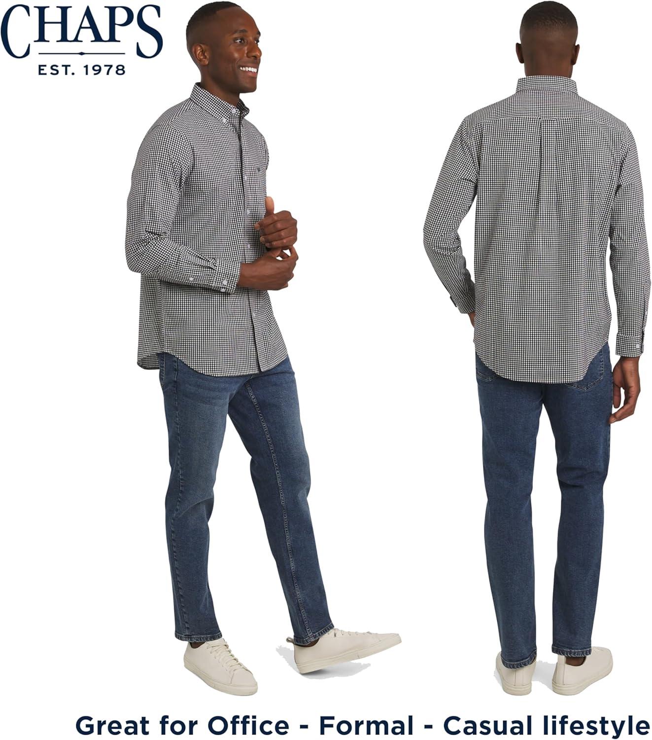 Chaps Mens Classic Fit Long Sleeve Button Down Stretch Poplin Casual Shirt(American Black)