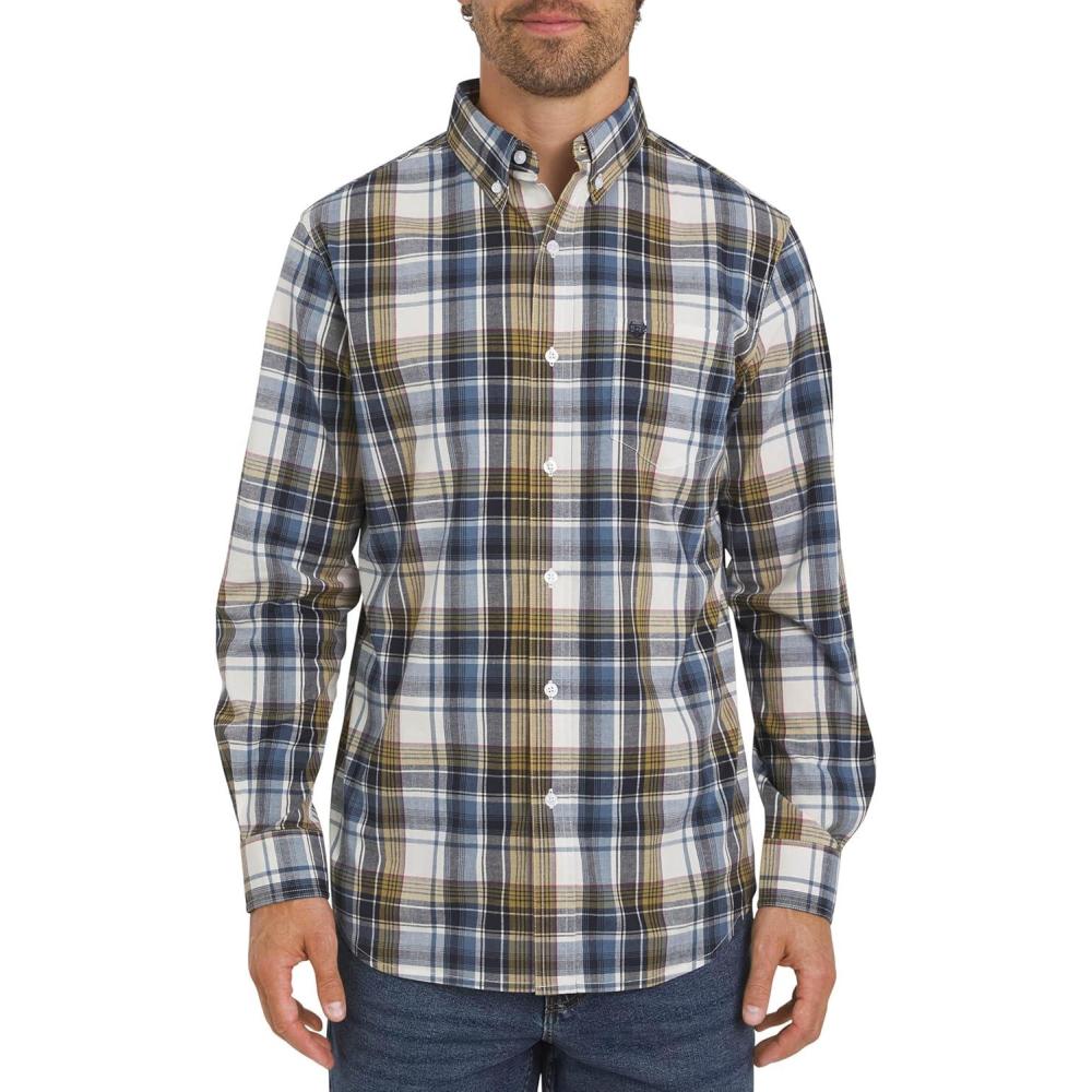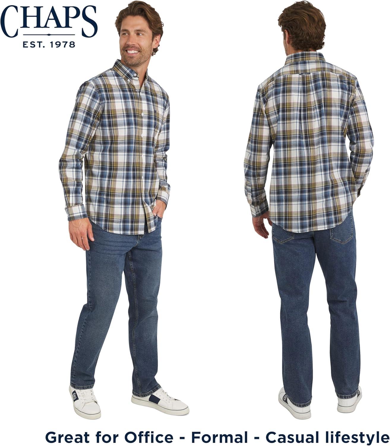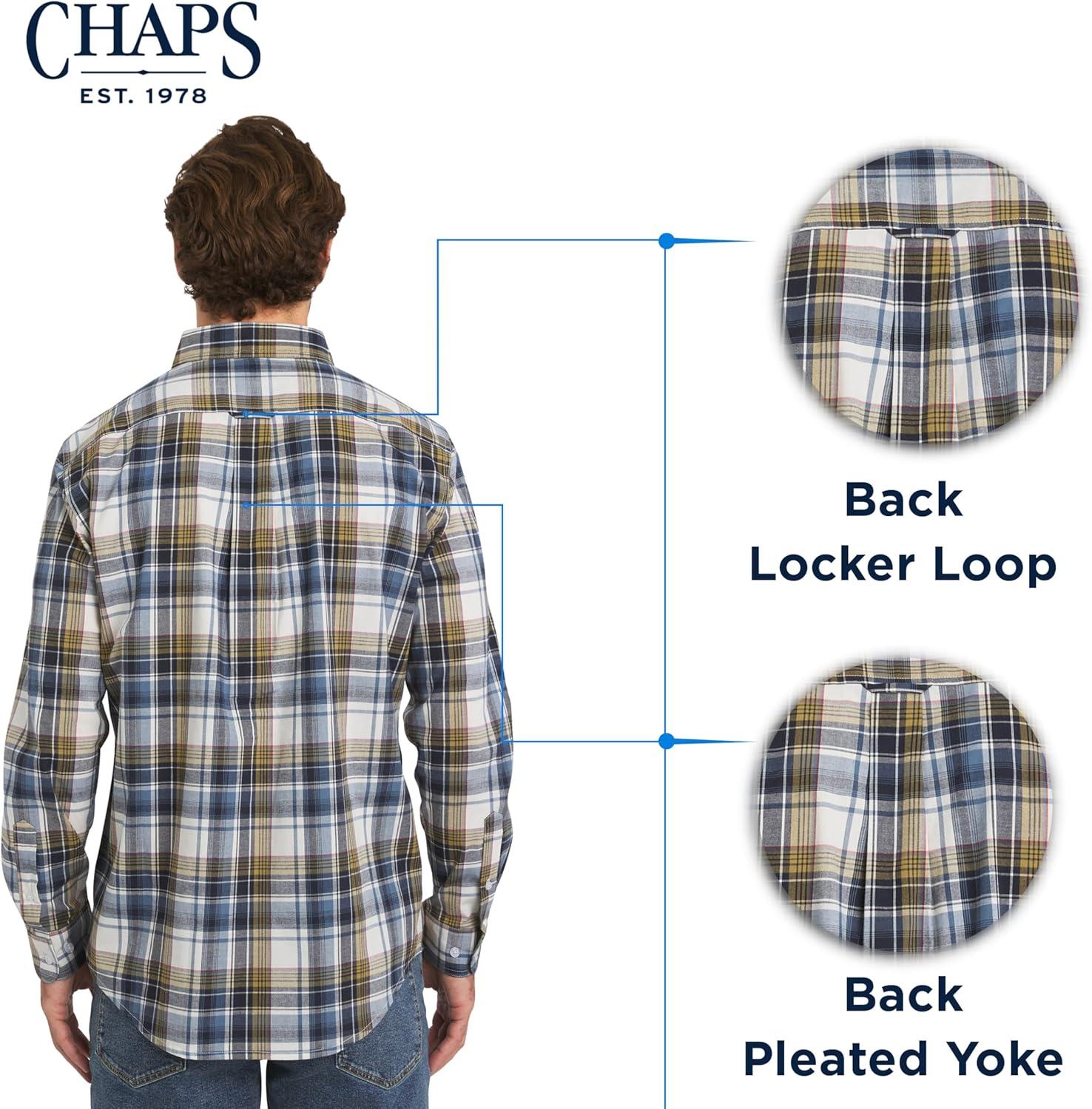 The Chaps legacy, born in 1978, has always been about celebrating a timeless American aesthetic. Our designs honor this heritage by blending classic, spirited style with the needs of modern life. This poplin shirt is a prime example of our commitment to quality and versatility, offering a polished look that's perfect for any occasion. From essential workwear to a casual weekend, this shirt is a staple that elevates your style with effortless comfort and a nod to a storied tradition. Experience superior comfort with this stretch poplin shirt. The fabric, a carefully chosen blend of cotton, polyester, and spandex, is soft, breathable, and flexible enough for all-day wear. A carbon-peached finish gives the material a luxurious, velvety texture, while the natural poplin plain weave provides a smooth, crisp surface with a subtle sheen. The yarn-dyed fabric ensures that its rich, intricate patterns maintain their colorfastness, delivering exceptional durability and a refined appearance that will last. Thoughtful design details complete this classic long-sleeve shirt. The classic fit offers a comfortable silhouette, while a button-down collar and adjustable cuff buttons provide a sharp, clean look. The back pleated yoke and locker loop ensure a full range of motion and an easy way to hang the shirt, and the scooped hem allows for a versatile tucked or untucked style. A chest pocket with an embroidered logo adds a final touch of signature detail. This shirt is also machine washable and wrinkle-resistant, making it a truly low-maintenance addition to your wardrobe.
