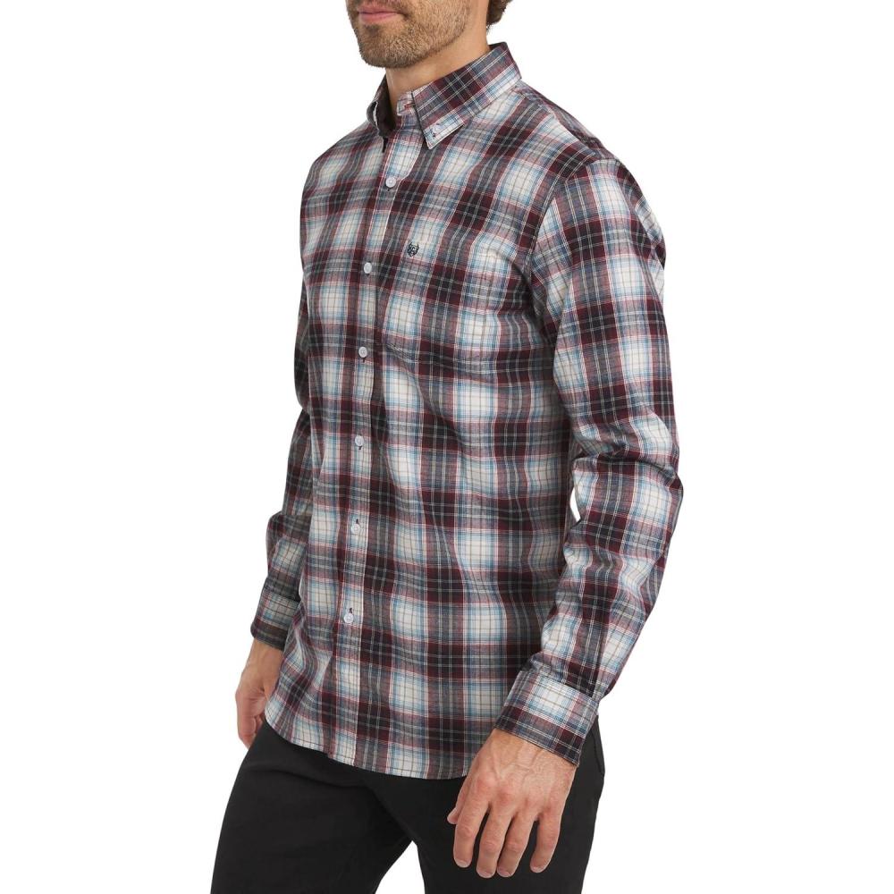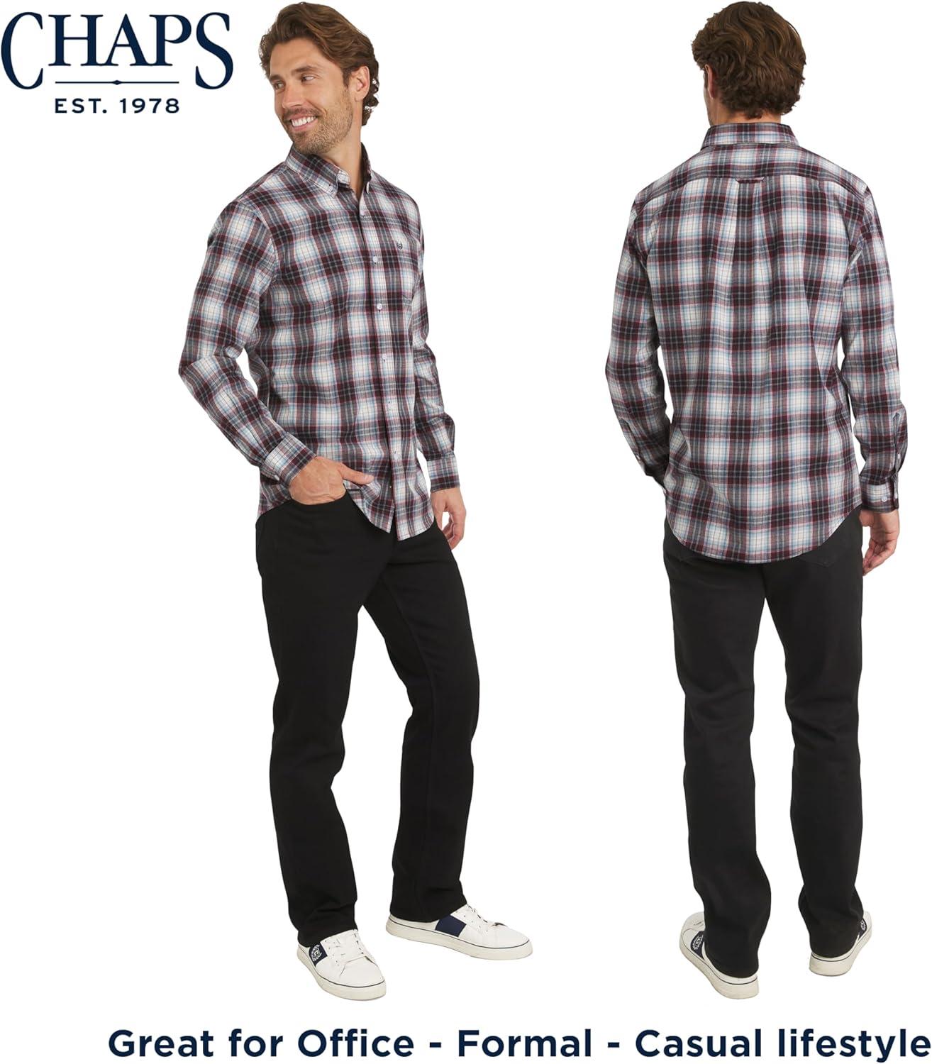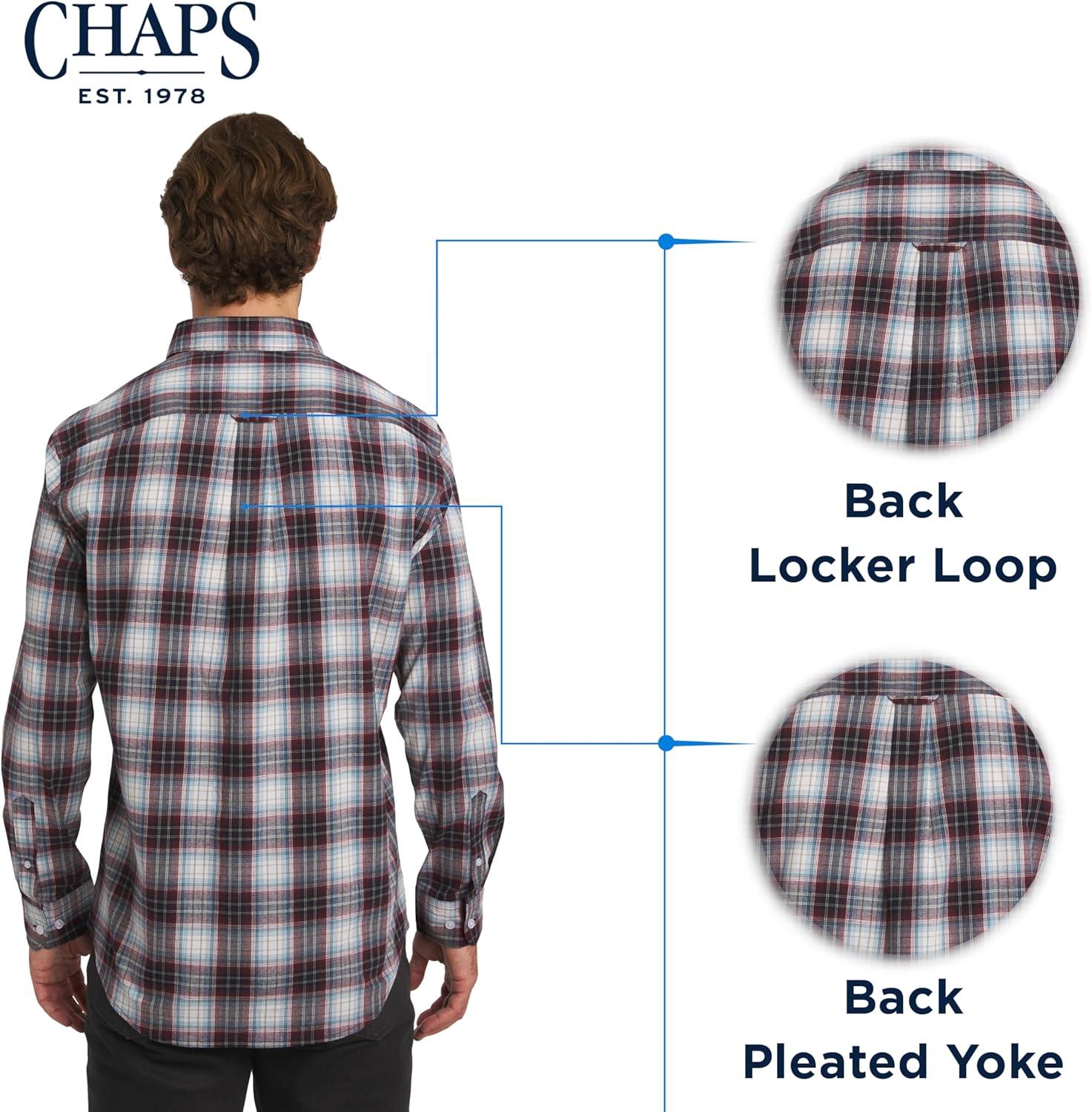 The Chaps legacy, born in 1978, has always been about celebrating a timeless American aesthetic. Our designs honor this heritage by blending classic, spirited style with the needs of modern life. This poplin shirt is a prime example of our commitment to quality and versatility, offering a polished look that's perfect for any occasion. From essential workwear to a casual weekend, this shirt is a staple that elevates your style with effortless comfort and a nod to a storied tradition. Experience superior comfort with this stretch poplin shirt. The fabric, a carefully chosen blend of cotton, polyester, and spandex, is soft, breathable, and flexible enough for all-day wear. A carbon-peached finish gives the material a luxurious, velvety texture, while the natural poplin plain weave provides a smooth, crisp surface with a subtle sheen. The yarn-dyed fabric ensures that its rich, intricate patterns maintain their colorfastness, delivering exceptional durability and a refined appearance that will last. Thoughtful design details complete this classic long-sleeve shirt. The classic fit offers a comfortable silhouette, while a button-down collar and adjustable cuff buttons provide a sharp, clean look. The back pleated yoke and locker loop ensure a full range of motion and an easy way to hang the shirt, and the scooped hem allows for a versatile tucked or untucked style. A chest pocket with an embroidered logo adds a final touch of signature detail. This shirt is also machine washable and wrinkle-resistant, making it a truly low-maintenance addition to your wardrobe.