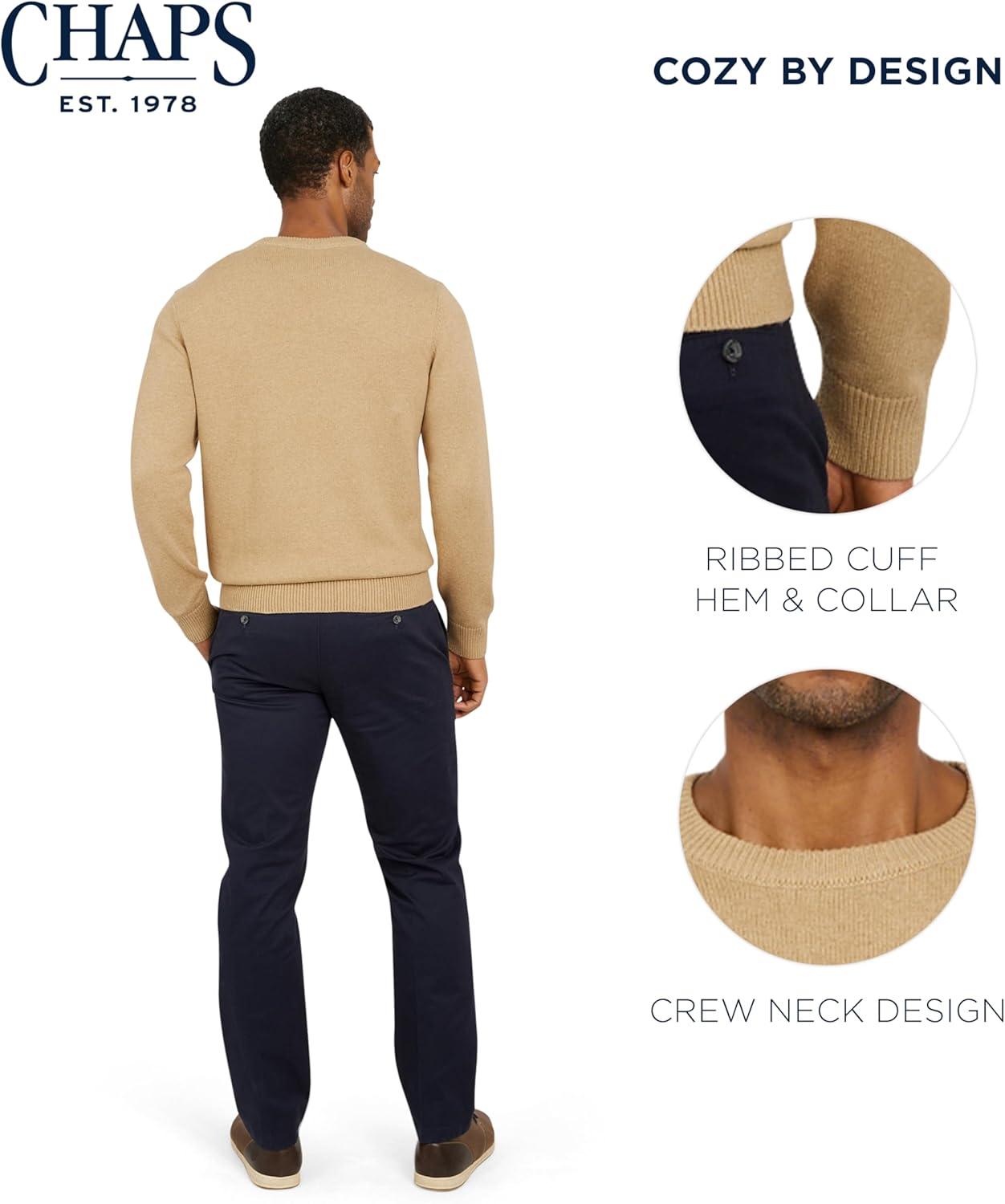 Chaps Men’s Classic Fit Long Sleeve Cotton Jersey Midweight Crewneck Sweater(Camel Heather)