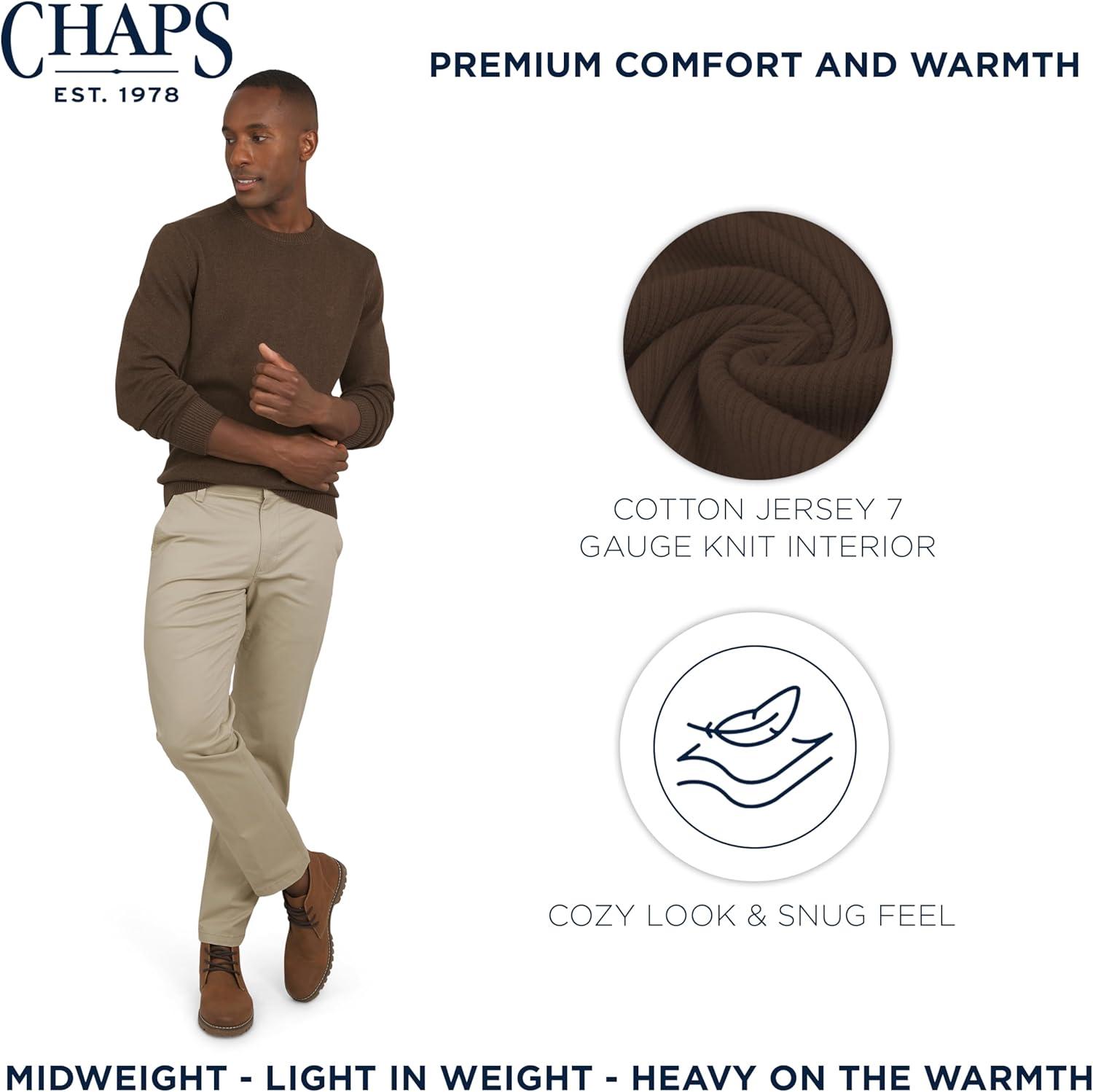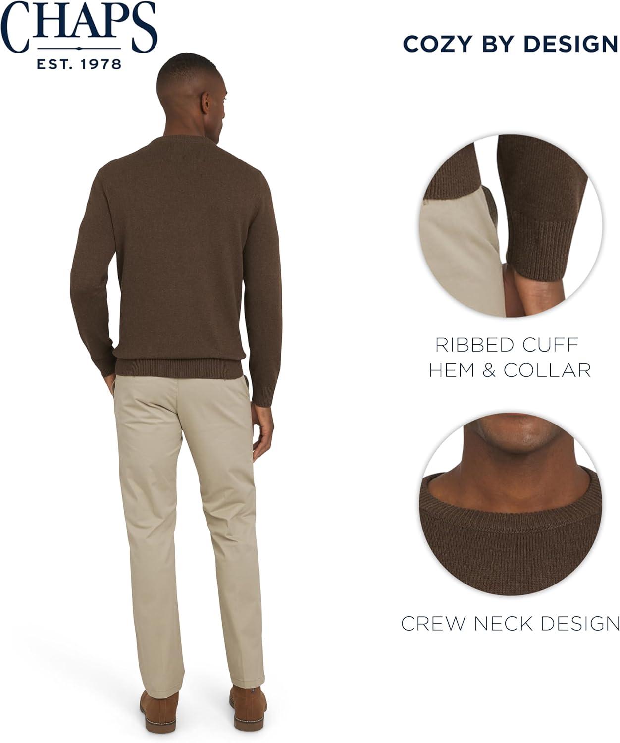Chaps Men’s Classic Fit Long Sleeve Cotton Jersey Midweight Crewneck Sweater(Espresso Heather)