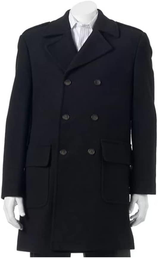 Chaps Men’s Double Breasted Wool Blend Top Coat, Black, Size 48REG