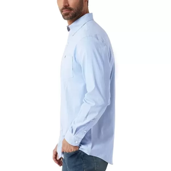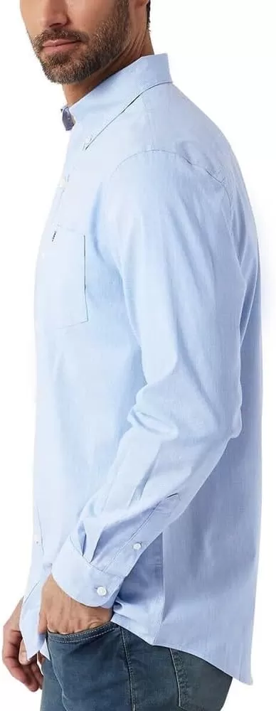 Regular Fit Stretch Fabric Button-down collar 1 left front chest pocket Shorter length that can be worn tucked or untucked Embroidered logo on pocket