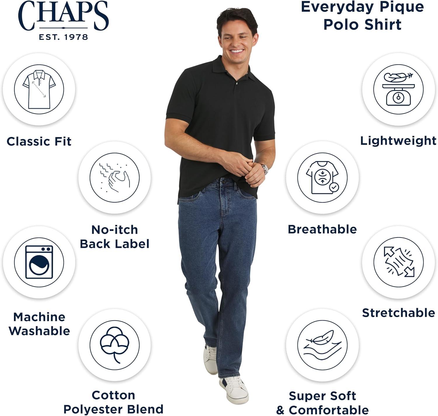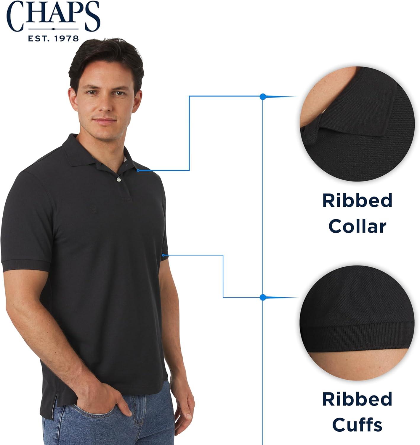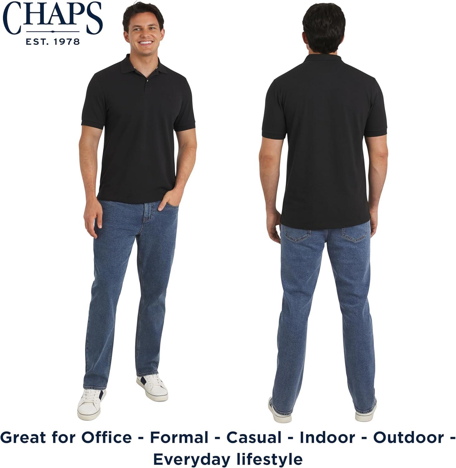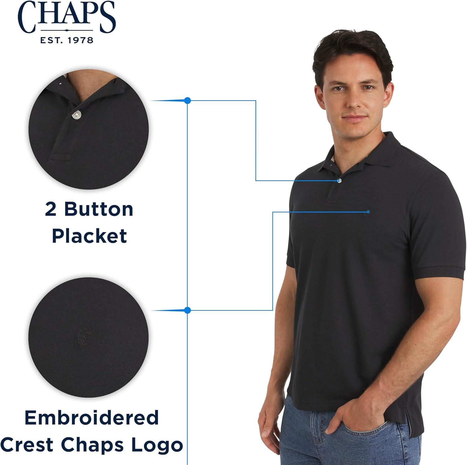 Chaps Men’s Everyday Casual Classic Fit Stretch Pique Polo Shirt (S-2XL)(American Black)