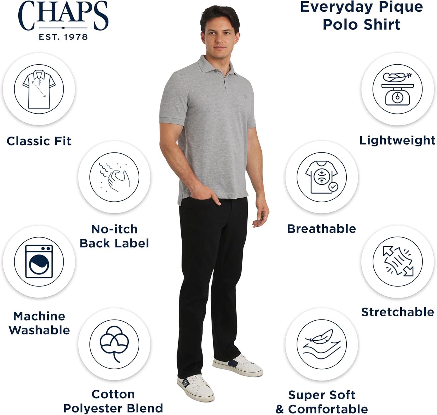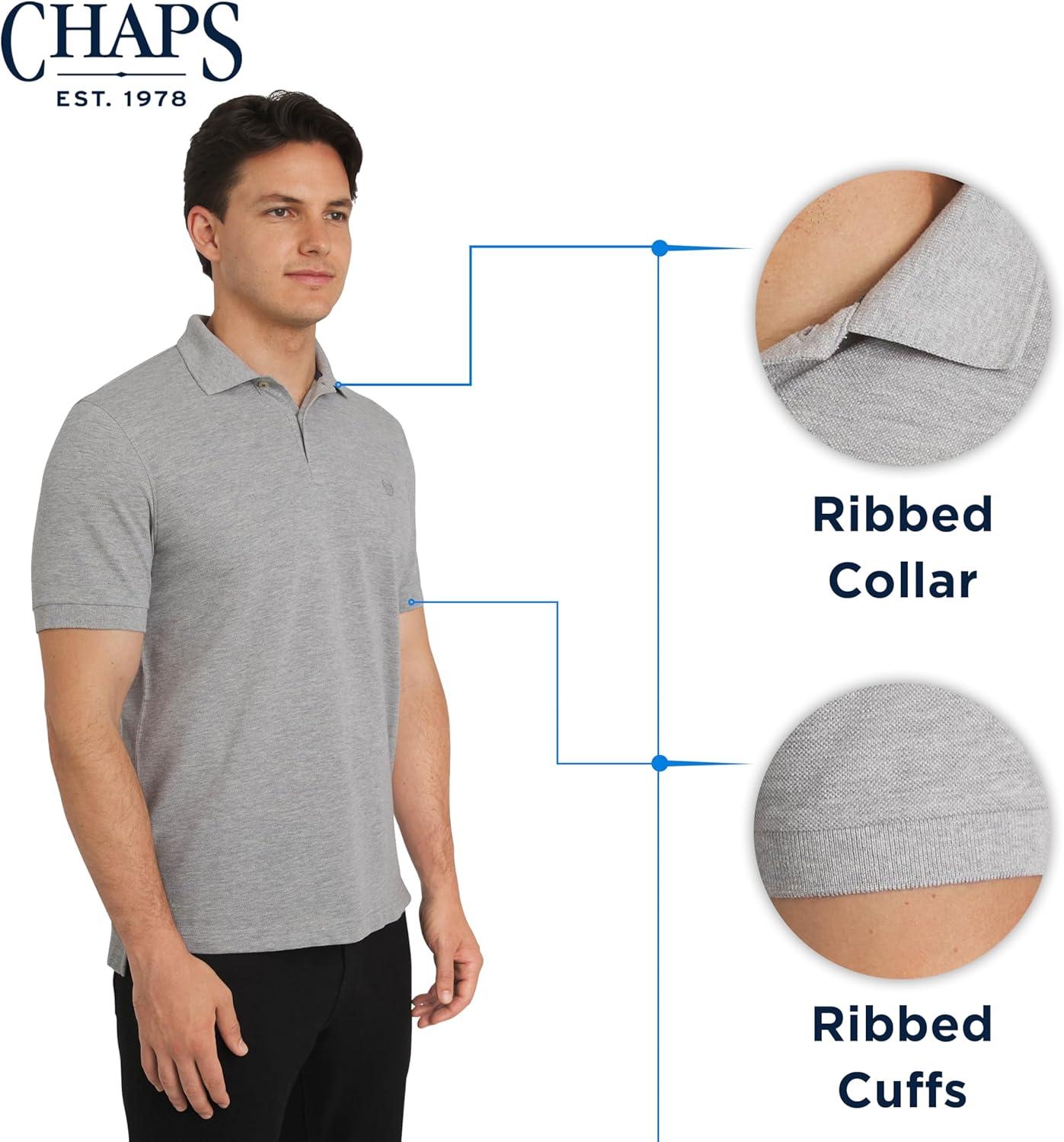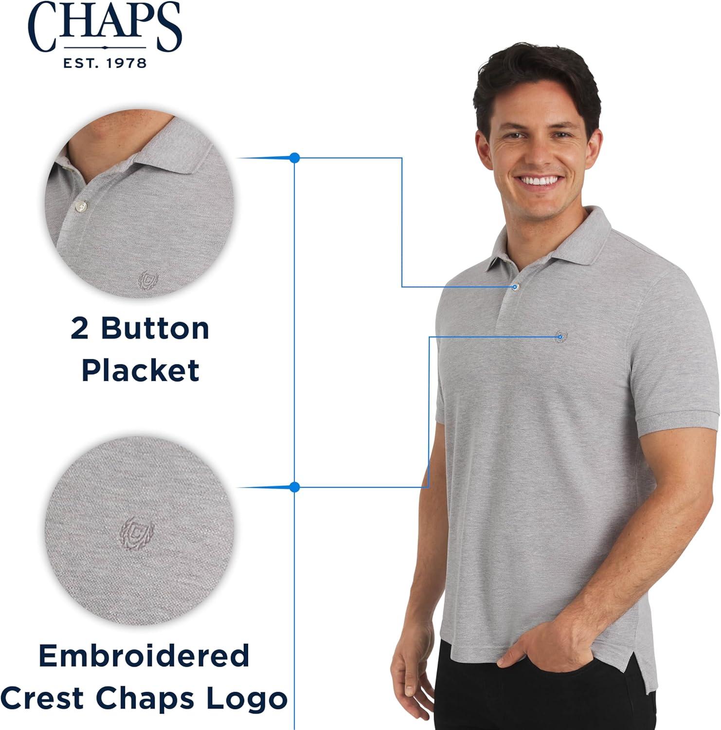 Chaps Men’s Everyday Casual Classic Fit Stretch Pique Polo Shirt (S-2XL)(Light Grey Heather)