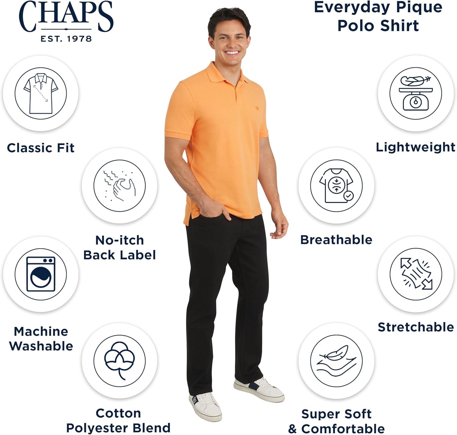 Chaps Men’s Everyday Casual Classic Fit Stretch Pique Polo Shirt (S-2XL)(Sunset)