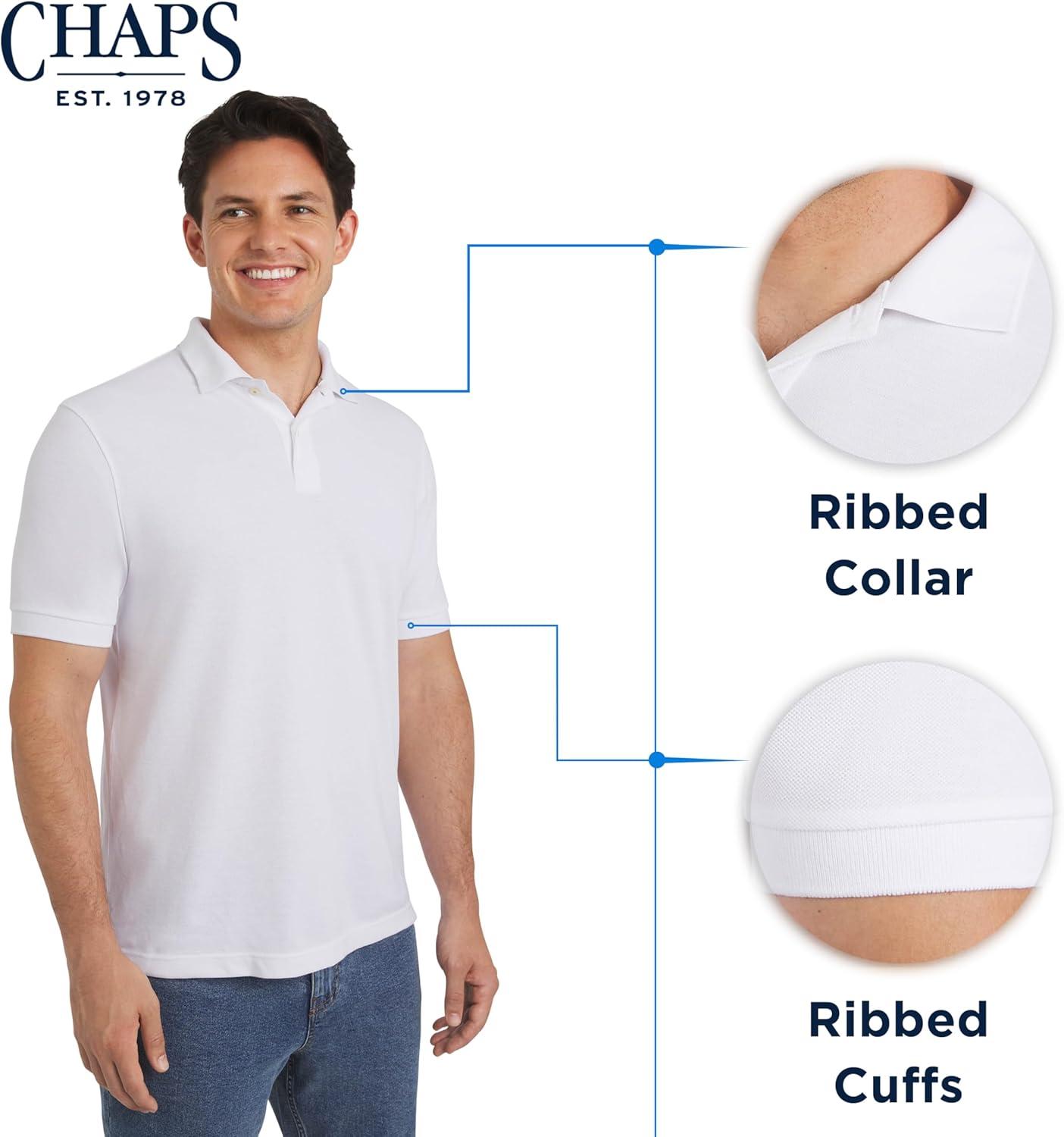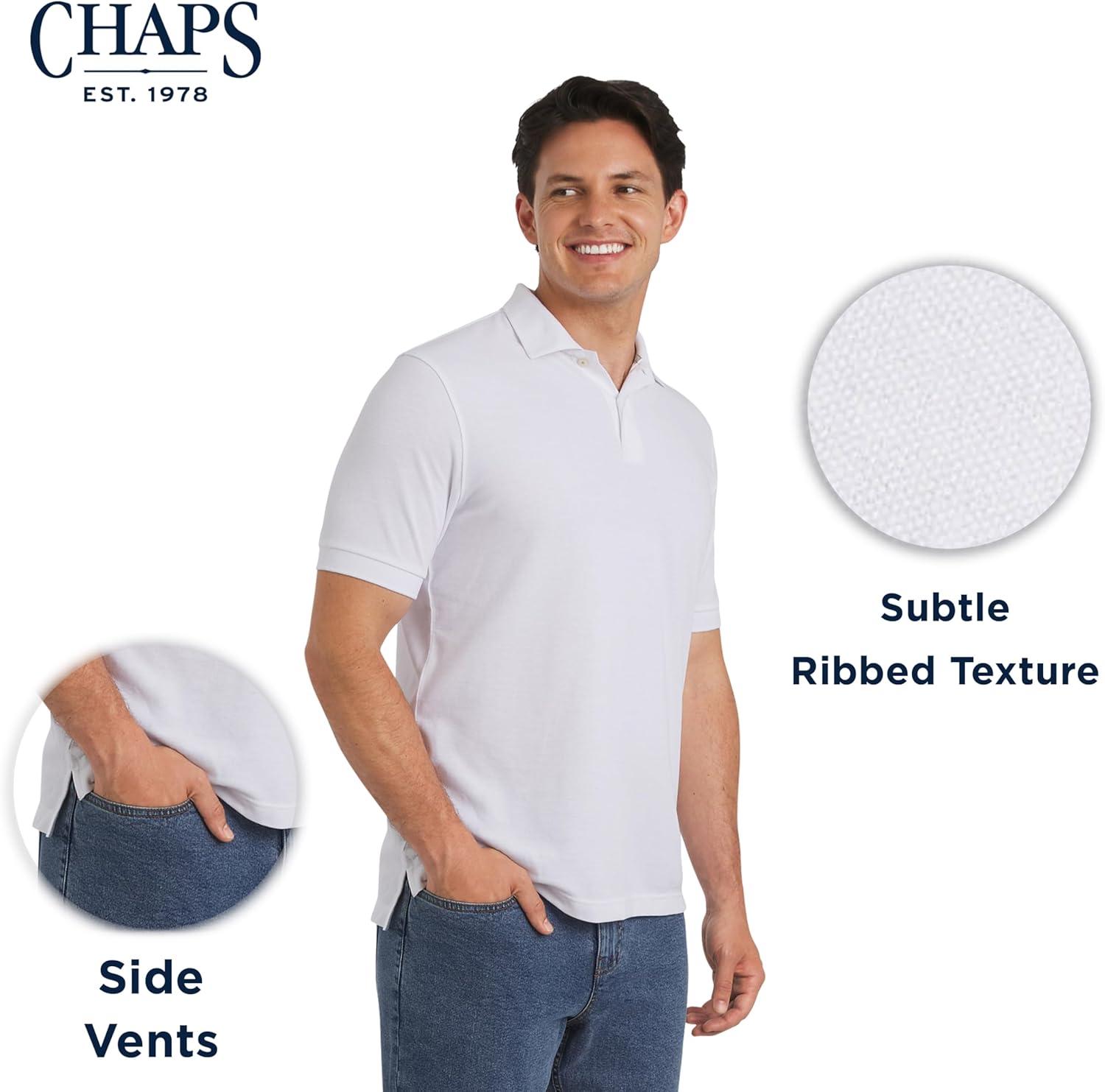 Chaps Men’s Everyday Casual Classic Fit Stretch Pique Polo Shirt (S-2XL)(White)