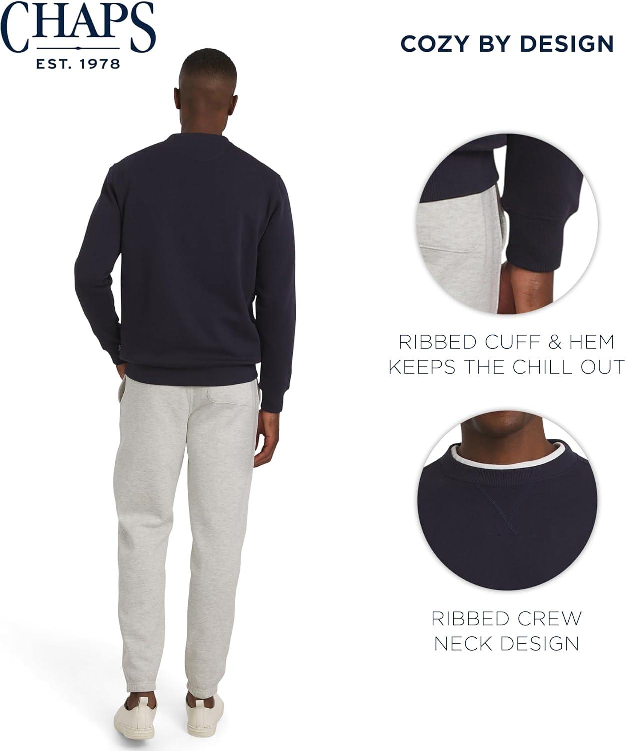 Chaps Men’s Everyday Classic Casual Long Sleeve Super Soft Fleece Midweight Crewneck Sweater(American Navy)