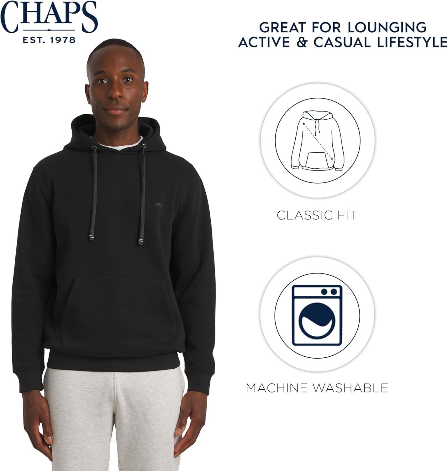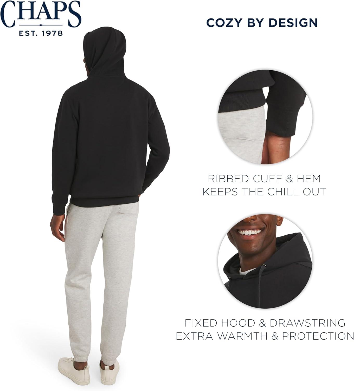Chaps Men’s Everyday Classic Casual Super Soft Fleece Midweight Hooded Sweater(American Black)