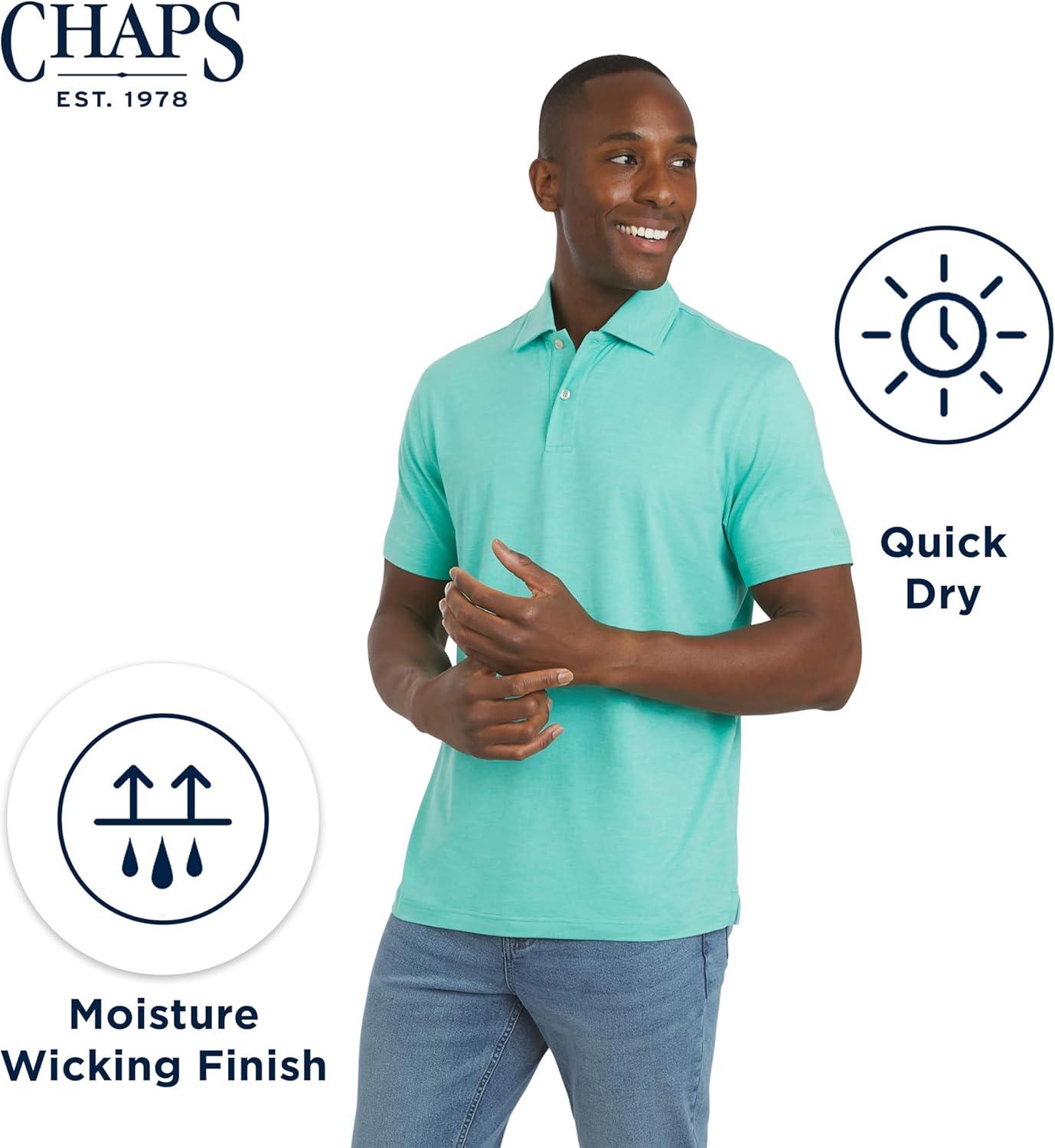Chaps Men’s Everyday Classic Fit Stretch Active Performance Polo Shirt(Pool Blue)