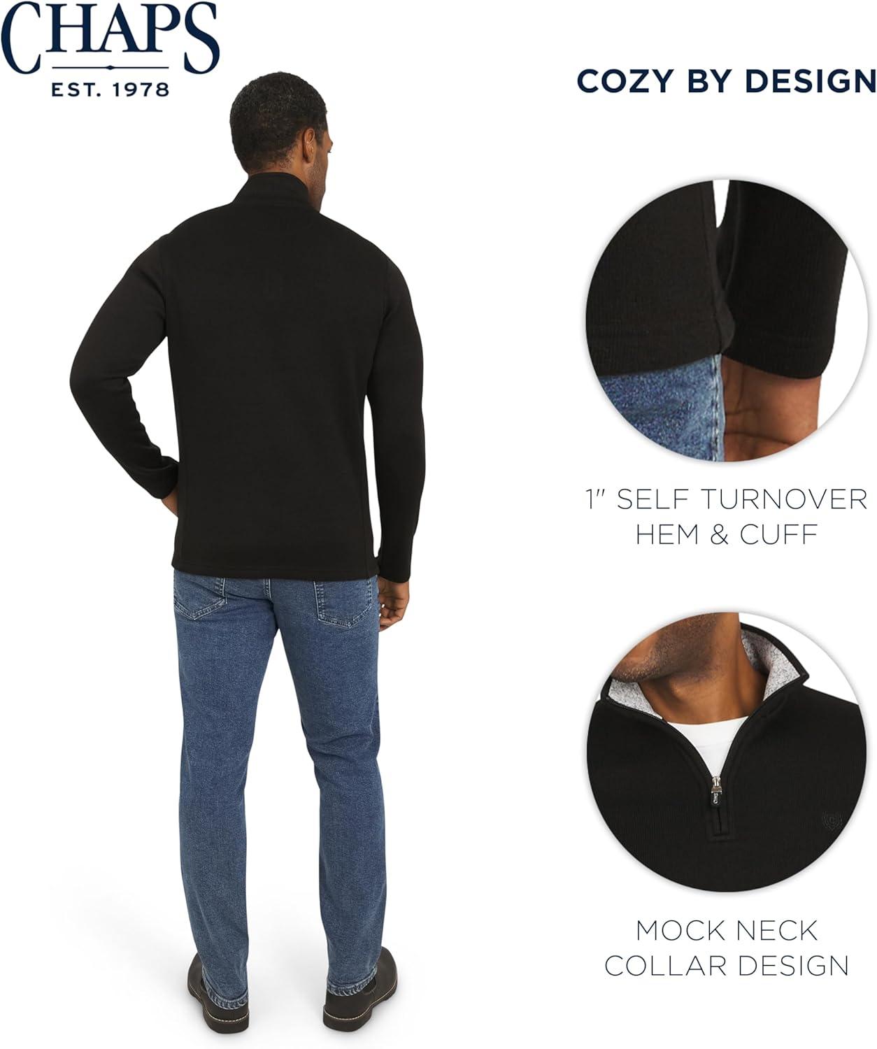 Embodying the timeless American aesthetic that began in 1978, the Chaps brand delivers classic and versatile pieces that seamlessly blend traditional style with modern, everyday comfort. This essential sweater is a perfect example, designed to elevate your wardrobe with a refined, clean look that transitions effortlessly from the office to outdoors. Its curated selection of classic colors and easy-to-style nature make it the ideal piece to showcase your personal style, whether you're dressing it up with a blazer and dress pants for a semi-formal event or keeping it casual with jeans for a weekend outing. Experience premium comfort and warmth with this mid-weight fleece sweater, meticulously crafted to provide exceptional warmth without the bulky feel. The outside features a smooth knit texture for a sleek, clean look, while the inside has plush, brushed fleece that feels incredibly soft against your skin. The stretchy fabric is designed to move with you and ensure a snug fit that locks in warmth, making this the perfect layering piece for any season. The versatile mock neck collar can be zipped up for added warmth or worn down for a relaxed, polo-like look. Designed for a timeless look, this garment features a comfortable, regular fit available in sizes from Small through XX-Large to ensure a great fit. A straight hem provides a clean, modern look that's perfect for wearing untucked, while a crest Chaps logo on the chest adds a touch of classic style. Two convenient side seam pockets offer discreet storage. To make maintenance simple, this cozy sweater is machine washable for convenient, low-maintenance care, ensuring it’s easy to keep looking its best and ready to wear again in no time.