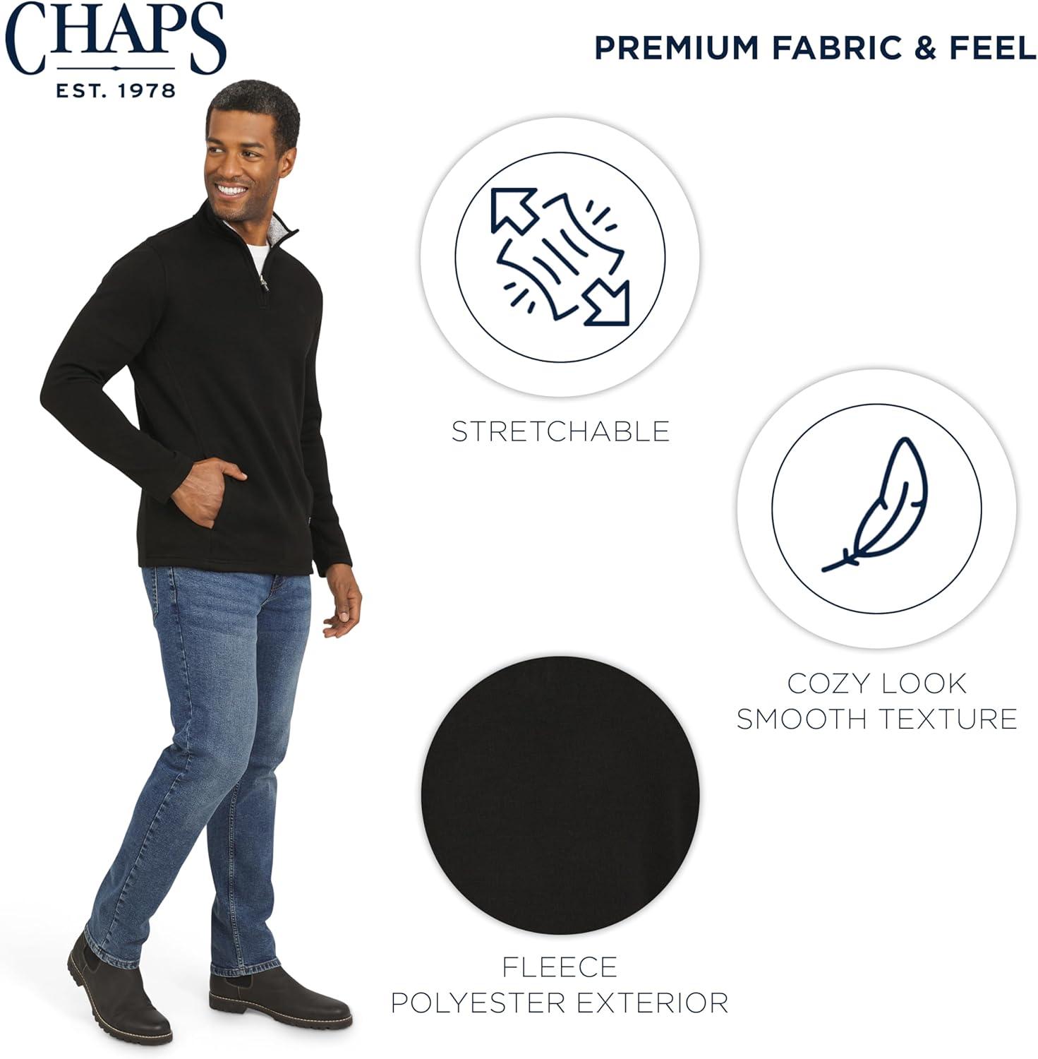 Chaps Men’s Regular Fit Long Sleeve Midweight Quarter Zip Fleece Pullover Sweater(American Black)
