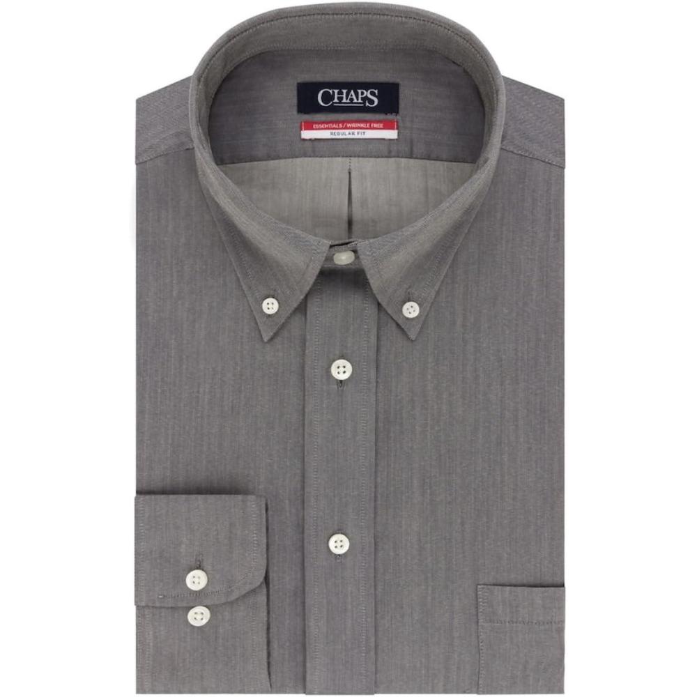 Timeless style. Thanks to its classic herringbone pattern, this men's Chaps dress shirt is always in style.