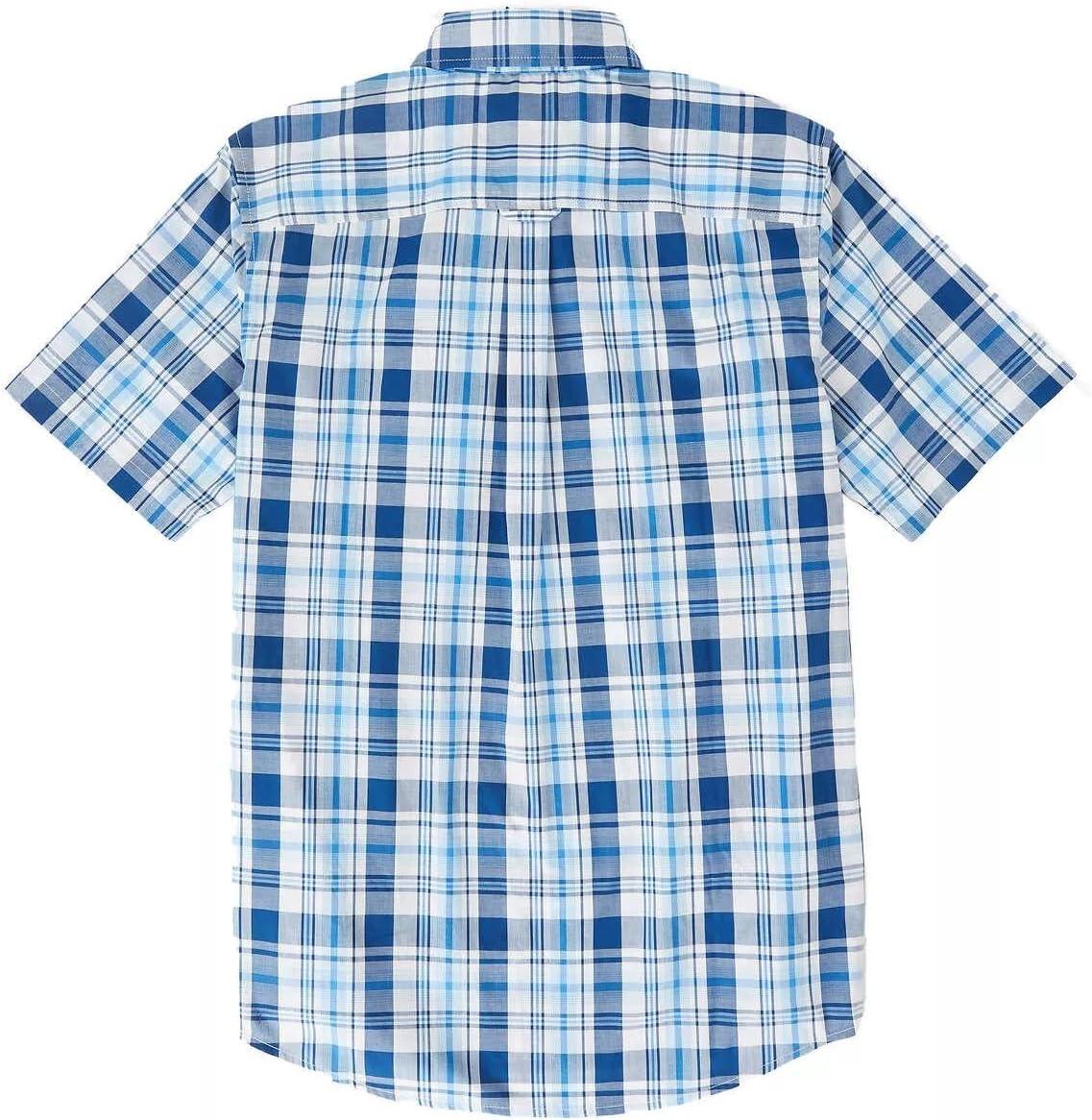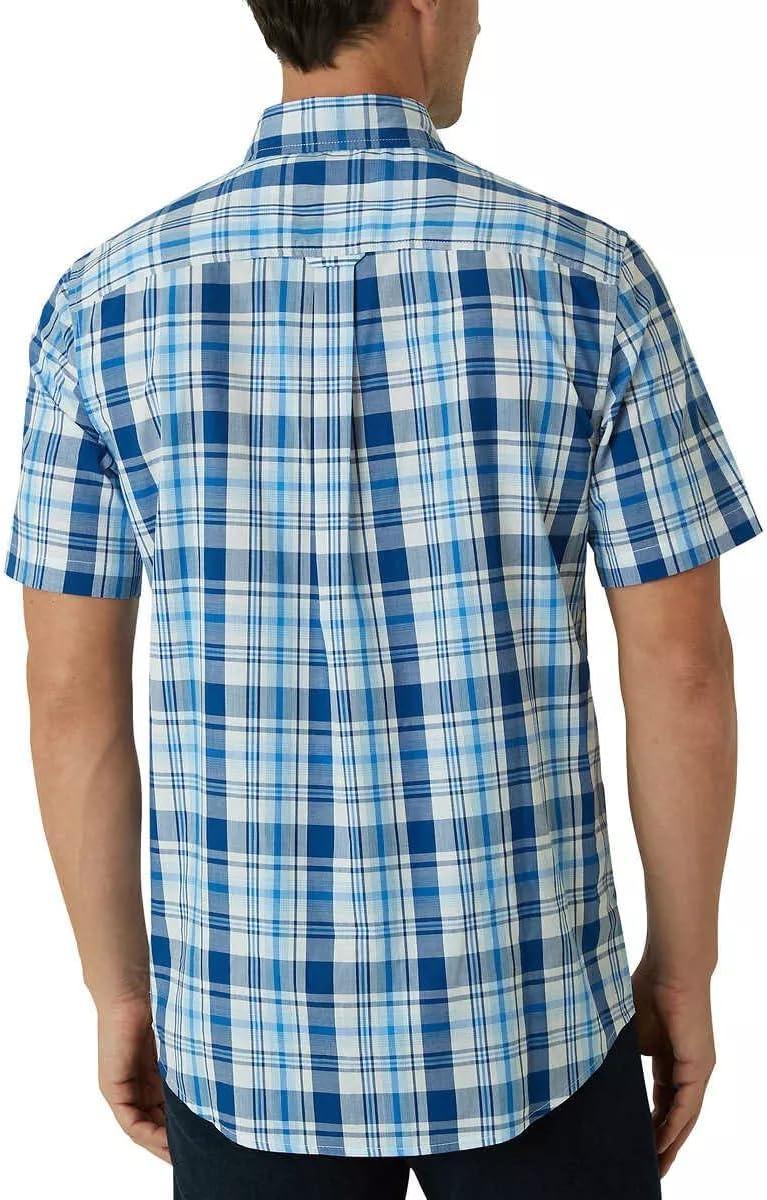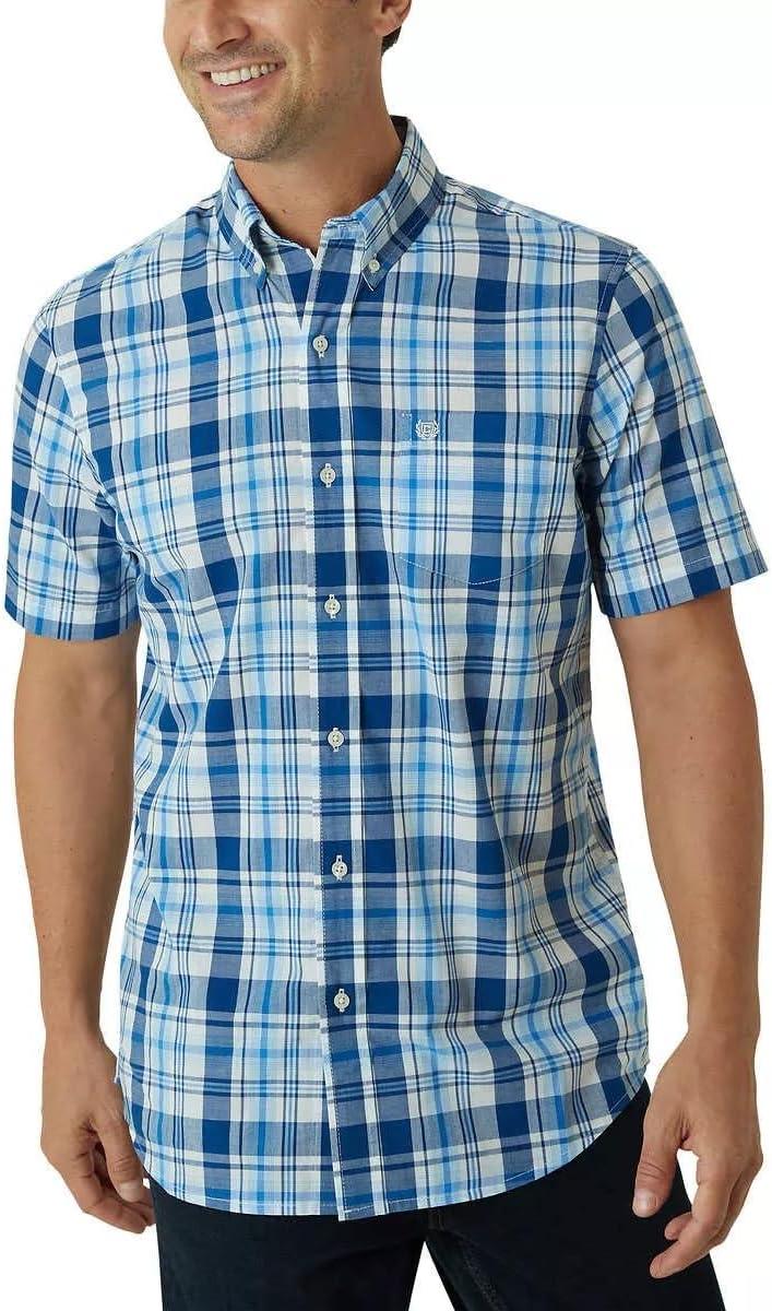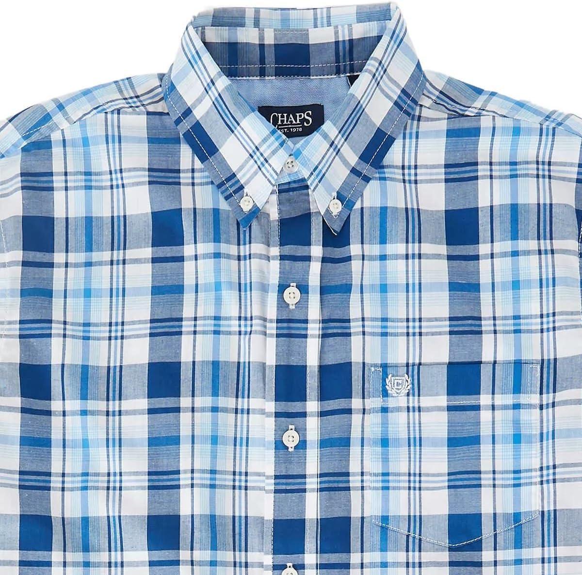 The Chaps Men's Short Sleeve Woven Shirt is a classic and comfortable option for any occasion. Featuring a left chest pocket with an embroidered logo, this button-down shirt has a collared neck and short sleeves. Made from a blend of cotton and recycled polyester, this easy-care shirt is designed for a classic fit. The shirt is machine washable and can be washed cold with like colors.