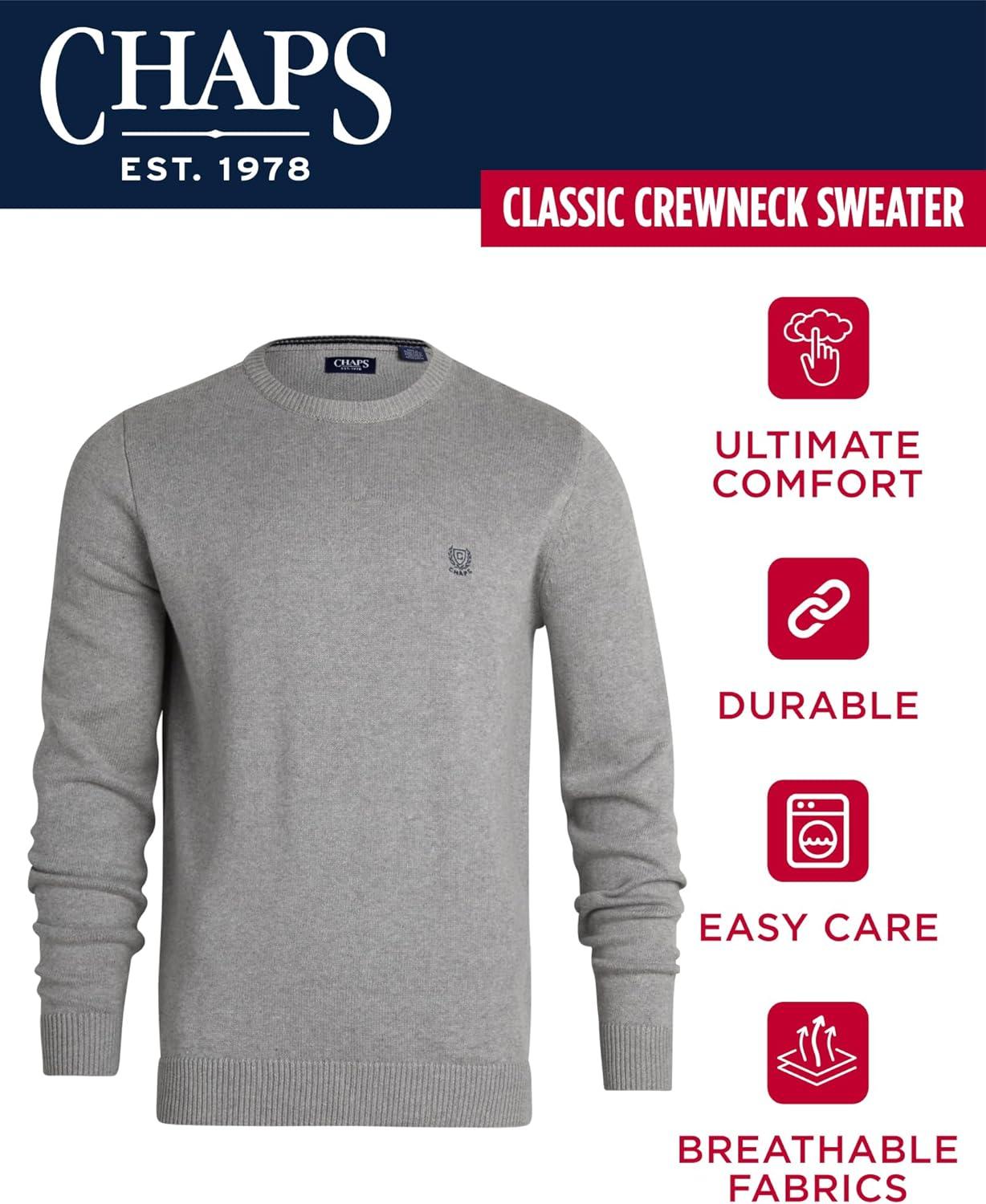 Chaps Men’s Sweater – Heavyweight Classic Fit Knitted Cotton Crewneck Pullover Sweater for Men (Sizes: S-2XL)(Grey Heather)