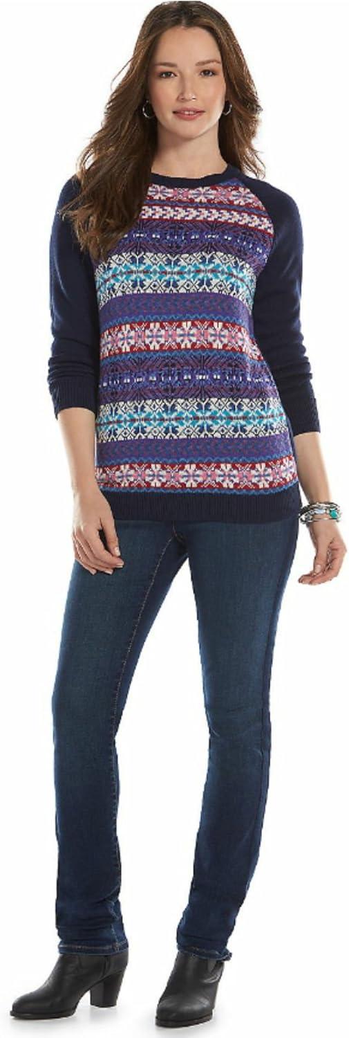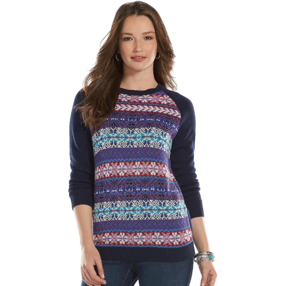 Timeless style. Featuring a fairisle pattern, this women's Chaps crewneck sweater instantly upgrades your cold-weather look.