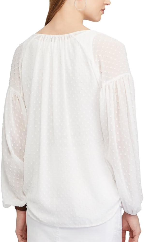 Chaps Women’s Jacquard Sheer Blouse Top, White (Medium)